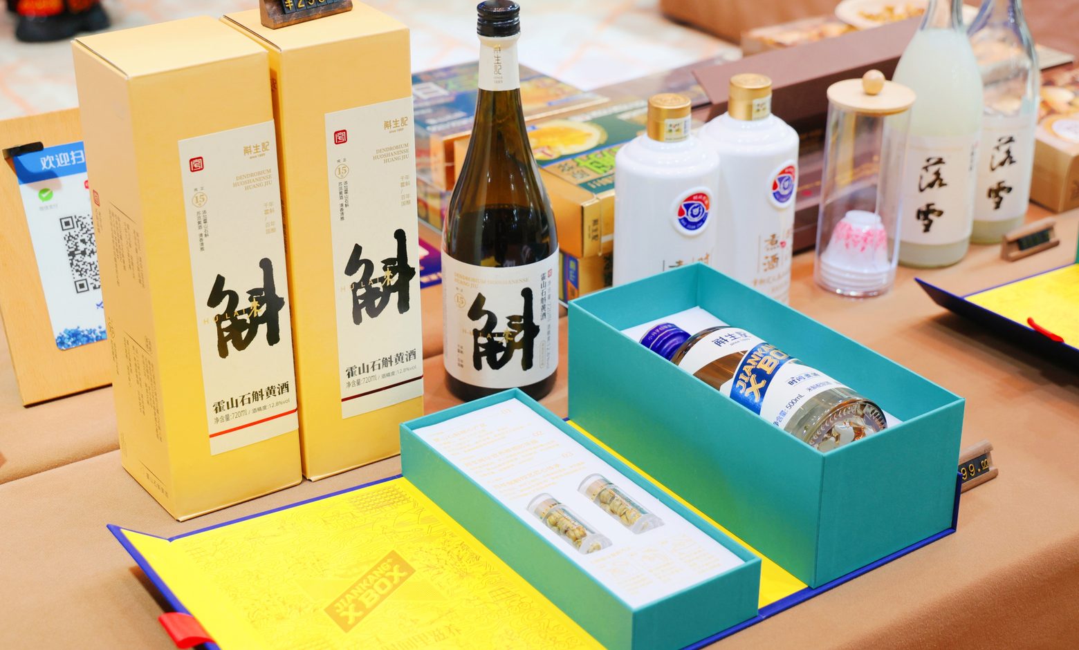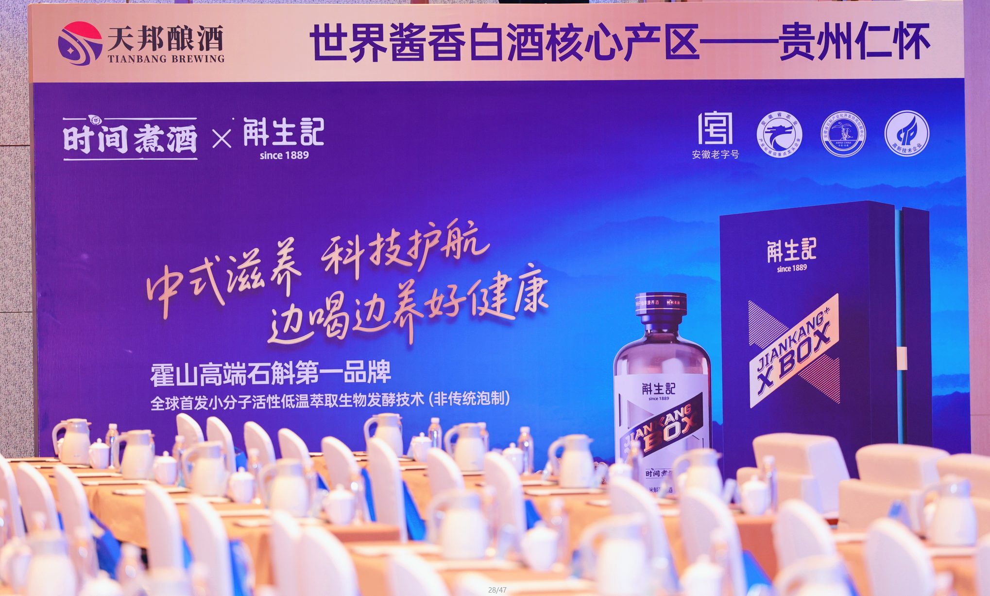 本次年会最受瞩目的亮点之一,是时间煮酒在展位现场正式发布了全新产品——仙草石斛养生酒。展板广告语赫然显示: